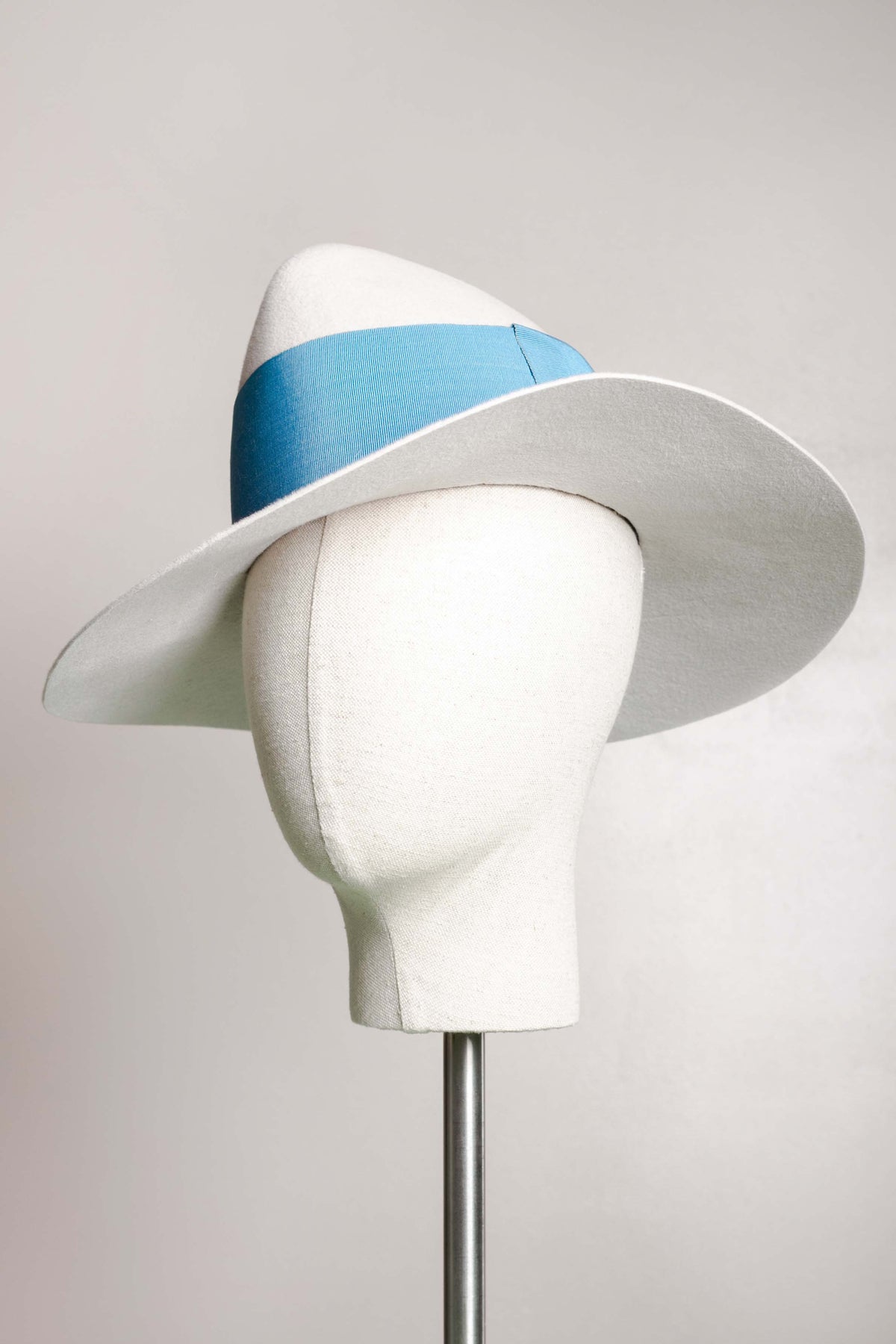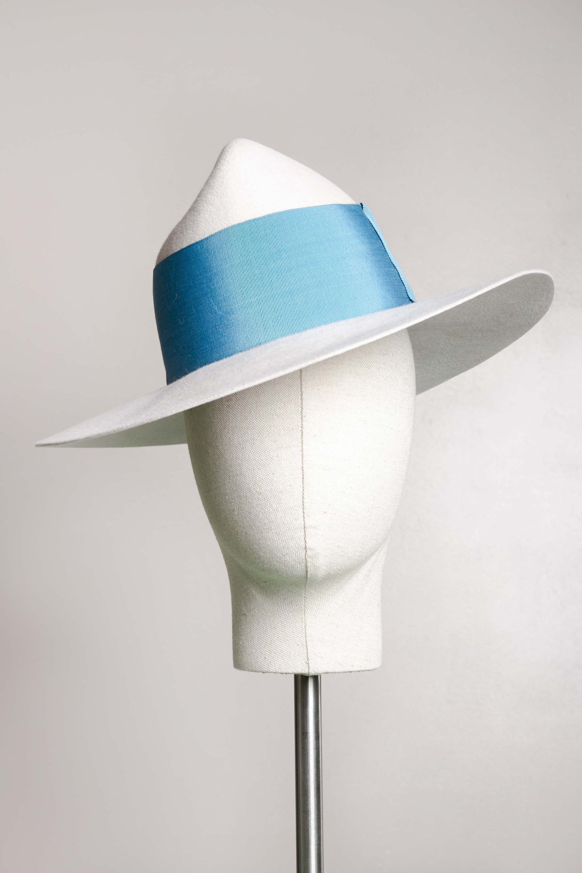 This hat can be made bespoke in all felt colours, and different colour ribbons can be sourced or dyed to match. For more information, please get in touch directly.