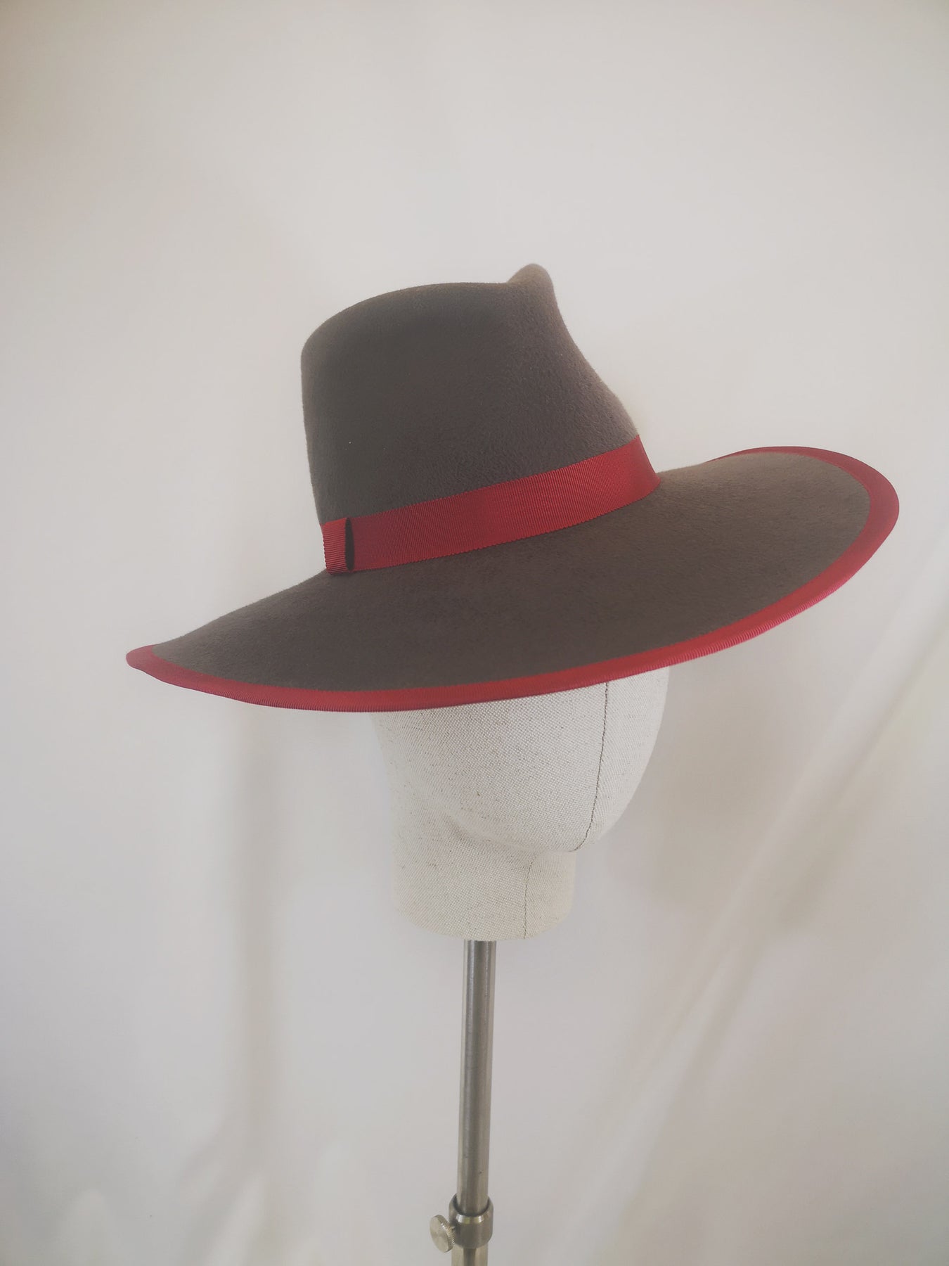 This hat can be made in a variety of felts and colours, and decorated with a ribbon of your choice. Please get in touch directly for more information.