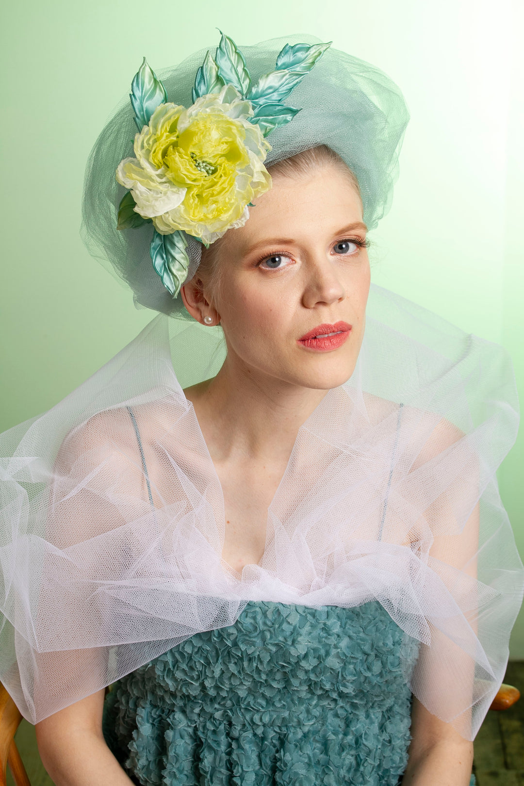 A turban is a stylish fabric headpiece, often (but not always) draped over a base, that mimics the look of a wrapped cloth. It can be created by draping, pleating, or wrapping materials over a base to give it structure, or by simply manipulating and stitching fabrics such as silk, satin, velvet, or tweed to achieve a softer finish. There is always the possibility of adding embellishments such as feathers, flowers, or brooches for a more couture look.