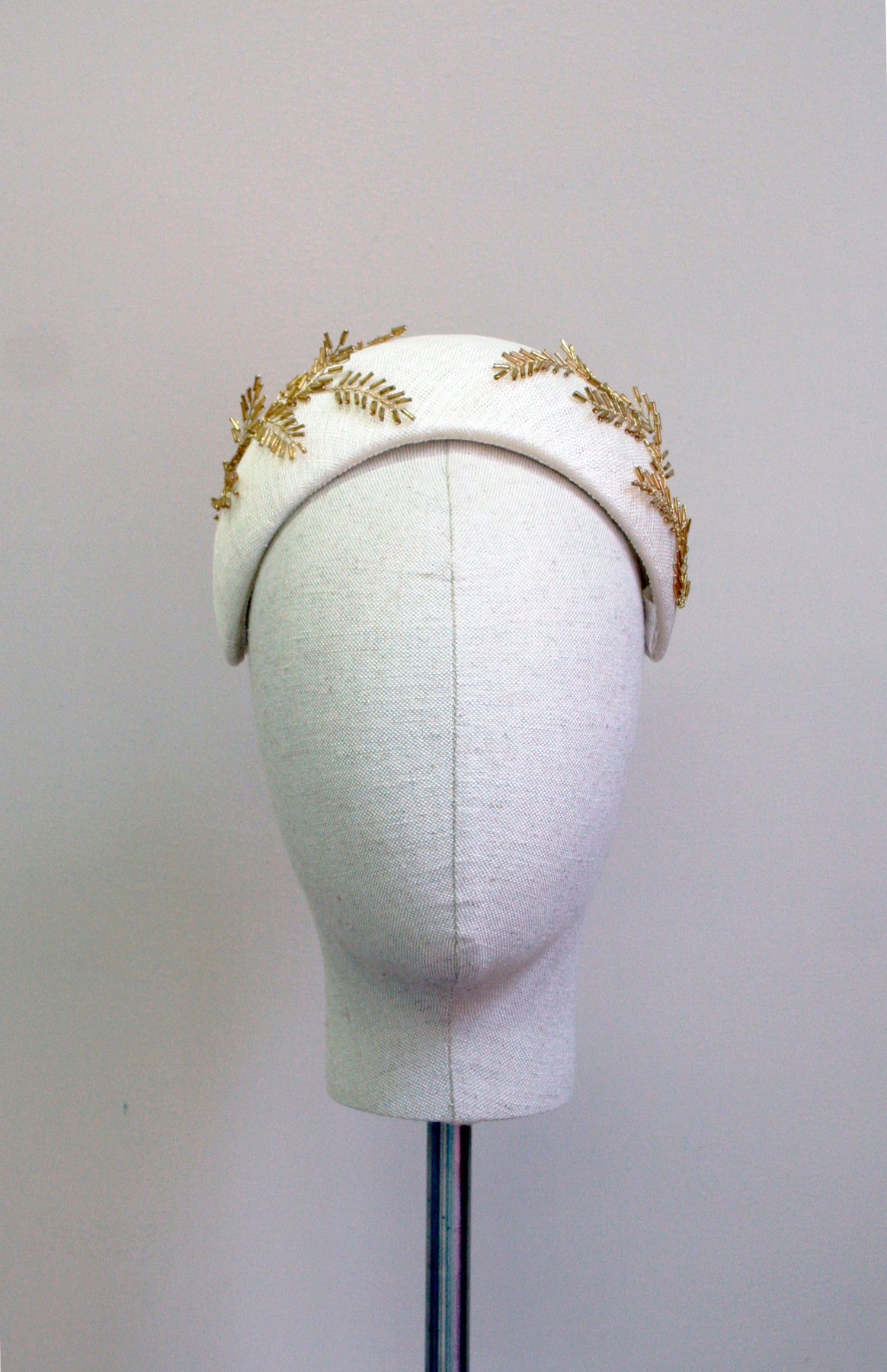 A beautifully made ivory Pinokpok headband, with gold bead-leaves details, perfect for a young bride or a fashionable guest.